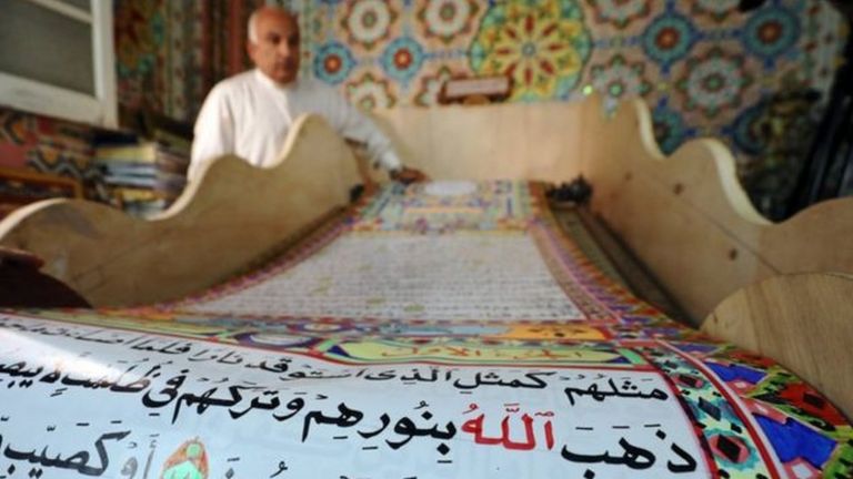 Raia mmoja wa Misri aliyewacha shule anatumai kuweka historia baada ya kutumia muda wa miaka mitatu akitengeza kile kinachoonekana huenda ikawa Quran kubwa zaidi duniani.